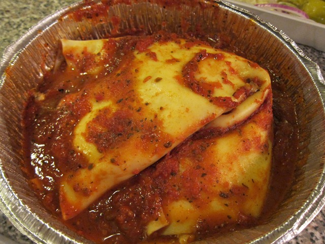 I ate about a quarter of the roll and can totally understand why this meal got such rave reviews. The lasagna was doughy and the roll was packed with cheese. Yes!