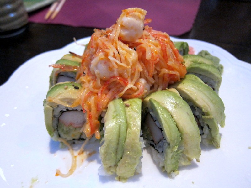 That roll (the Fuji roll?) was topped with scallops and shredded crab (well, “krab”) and was fantastic. I loved all the avocado and Ryan and his dad gave it rave reviews as well.