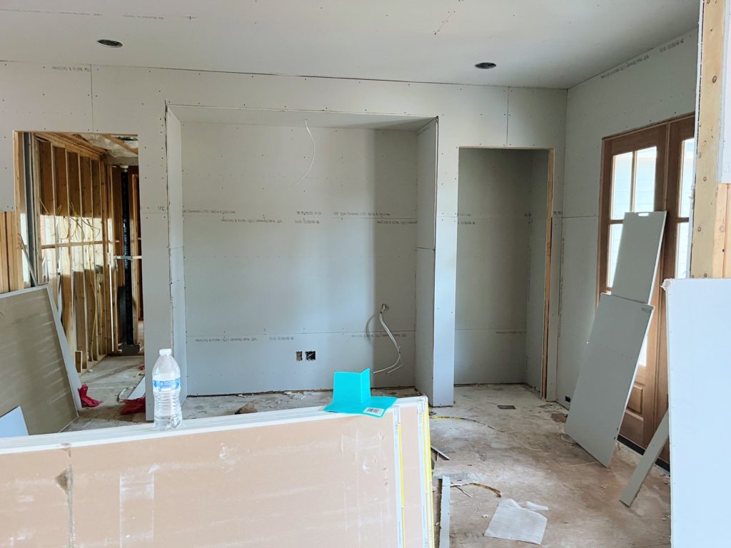 We aren’t going to have a formal dining room, but you can see the drywall and the new windows in the dining area right off our kitchen: