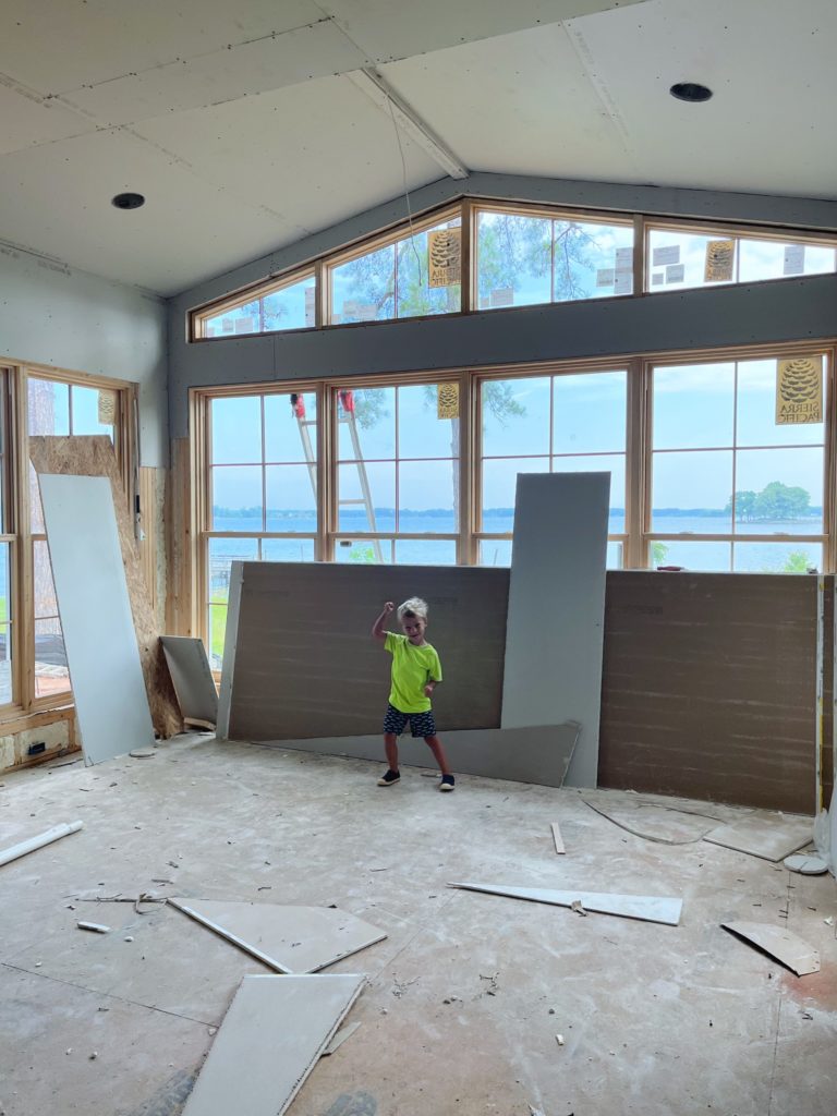 Saturday morning began with a family walk! Ryan and I were dying to make it over to the new house to check on everything because drywall began late last week and some of the upper windows we had to wait to have cut until after framing arrived.