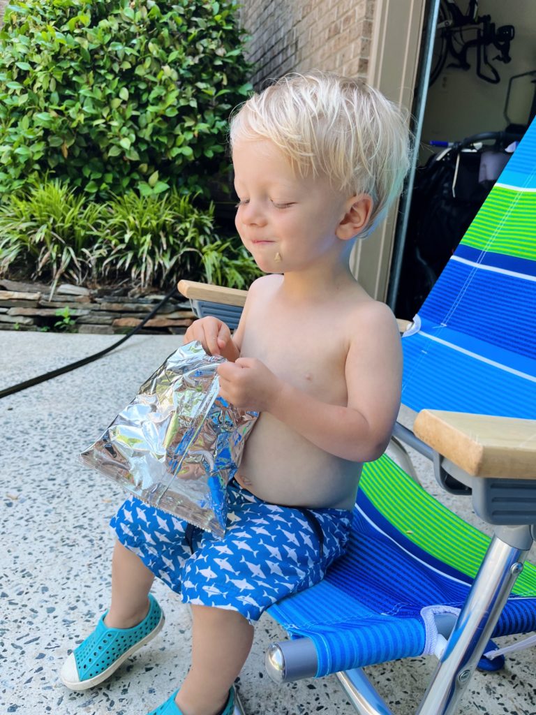 In addition to the water fun, Rhett was quite content to polish off the bag of crackers I brought outside for myself for a snack.