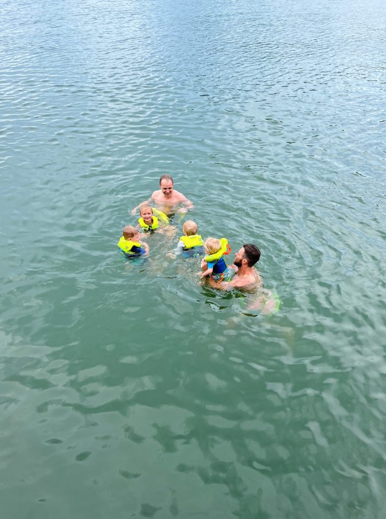 We had a fantastic time with our friends and the boys were in heaven playing on kid kayaks, jumping off the dock and collecting rocks along the little beach.