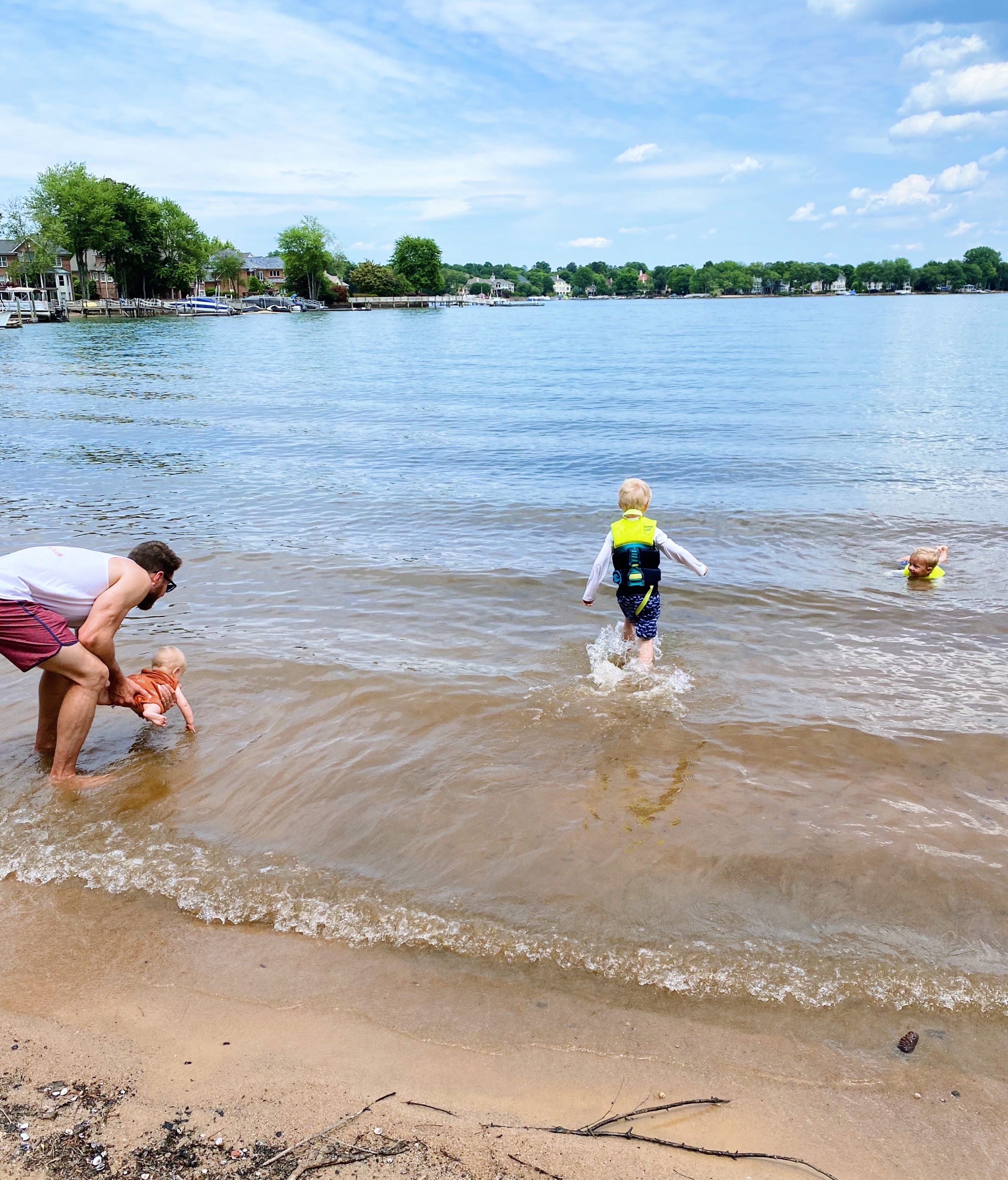 After our boat ride, the boys wanted to play at the little beach near where we dock our boat, so they splashed around for a bit (not packing swimsuits was a fail) and then we made our way home to grill some burgers for dinner and watch the Preakness horse race before bed!