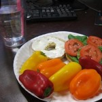 Good afternoon! Let’s do lunch, shall we? Do you see what I see? Vegetables! Woo! I’m not gonna lie, it feels a little weird to be eating healthy food and not downing casseroles, souffles, fried pickles and Easter candy. But it feels kind of great, too. Today’s lunch included a mozzarella, tomato and spinach bagelwich…