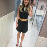 Black dress: 6 (via Marshalls) Cognac belt: Goodwill Turquoise necklace: Stella & Dot (Gift from Lori… Stay tuned for an awesome Stella & Dot giveaway soon!) Black cork heels: Charlotte Russe Turquoise and gold ring: BCBG