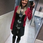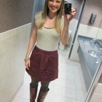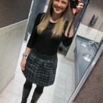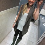Beige short-sleeved sweater: Forever 21 Brown camisole: Forever 21 Maroon wool skirt: J.Crew (Outlet) Brown tights: Banana Republic (Outlet) Brown riding boots: Colin Stewart (via Victoria’s Secret) Gold bangle: Banana Republic (Outlet) Gold wishbone necklace: Etsy (The same one I bought for my bridesmaids!) Gold headband: Gift from my mom And two more things… Sorry…