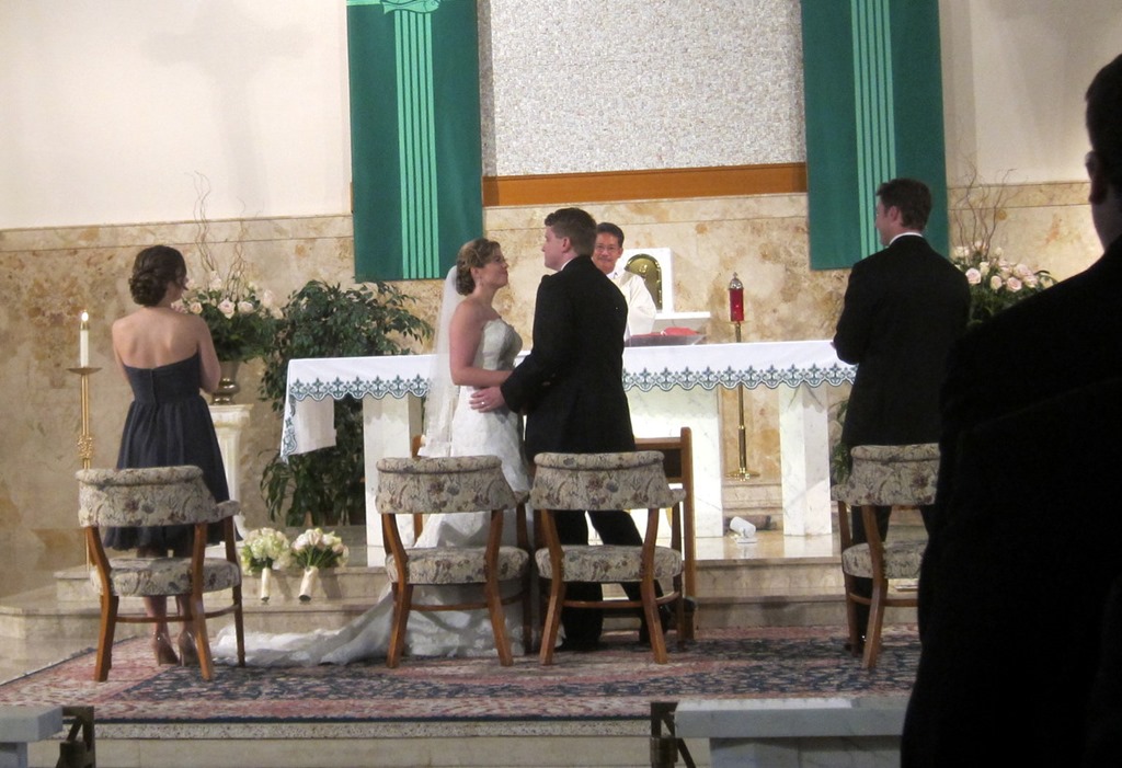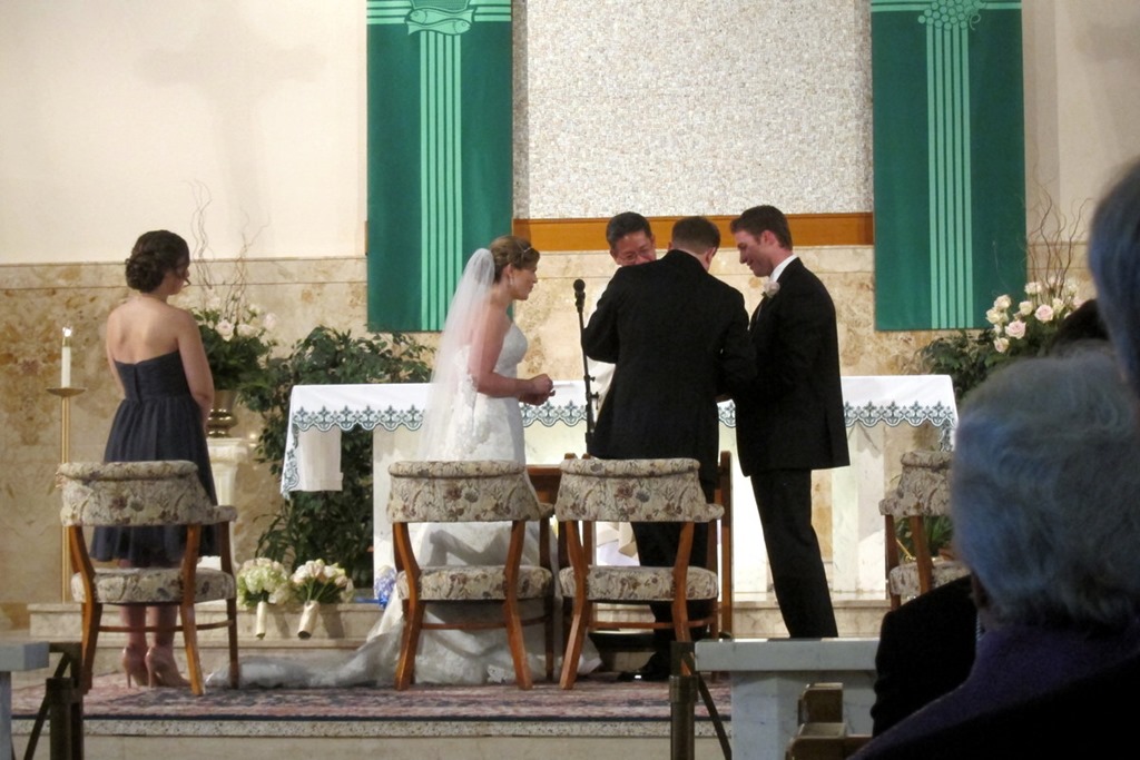 The bus drove hotel guests to the church and dropped us off about 30 minutes before the ceremony began. We had time to mingle with the bride and groom’s families and friends and chat with the groom and groomsmen.