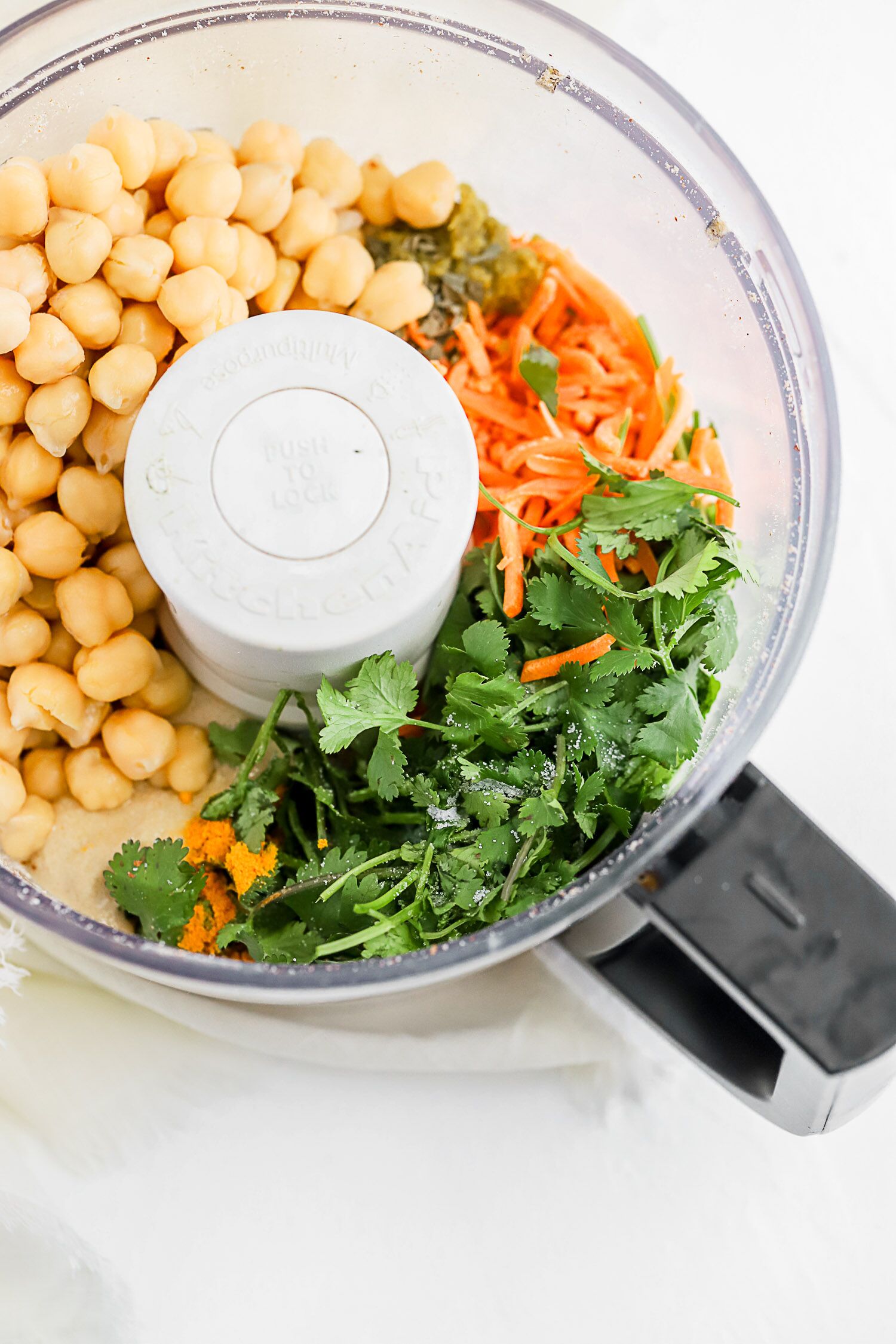 - Add all of the remaining ingredients to the food processor and pulse. Stir the mixture with a spatula and then continue to pulse until a thick, somewhat coarse batter comes together. (While you don’t want any large chunks of chickpeas in your burgers, you also don’t want a creamy puree so do not over mix!)