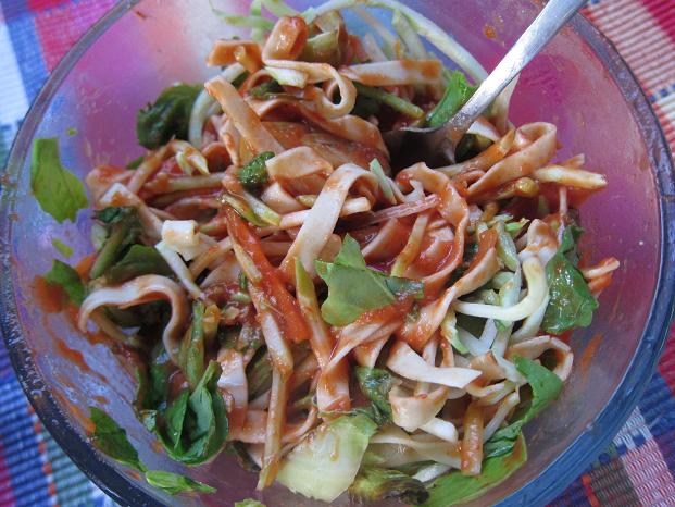 Love noodles! I like how you added brussels sprouts and spinach. Yum!