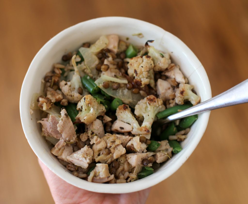 Lunch looked like a combination of brown rice, lentils, chicken thighs, green beans and roasted cauliflower. I cooked up a batch of the chicken thighs on Sunday night using my favorite Paleo chicken thigh marinade to use in lunches this week and love having them easily accessible in the fridge. My friend Carrie recently tried my marinade recipe but added a whole onion to it and told me how much she loved it that way, so I tried it out on Sunday as well. I can’t say I’m all that surprised I enjoyed it so much because I love onions in just about everything, so definitely add an onion to the recipe next time if you’re the same way!