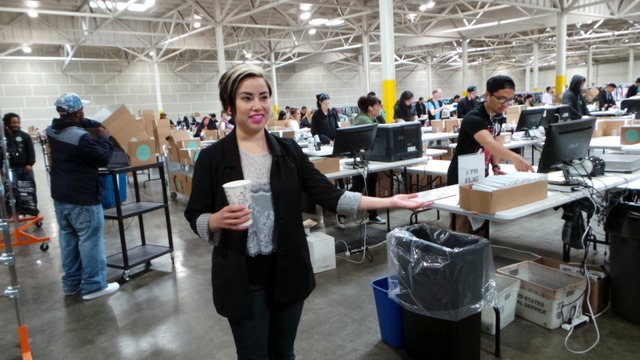 The lively culture in the warehouse is absolutely contagious. As we walked in between rows and rows of clothes, one employee sped by me singing aloud and rocking out to his music. It was awesome and I loved seeing people have fun as they helped fill the fixes.