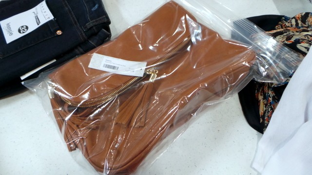 I folded up a bunch of items for Anna and was excited to see that she’s getting my favorite crossbody bag in brown! (I have it in black.)
