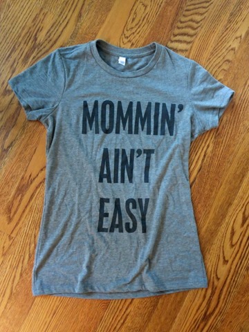 A few bright-eyed readers asked me about the t-shirt I was wearing in Monday’s blog post. It says “Mommin’ Ain’t Easy” and I am kind of in love with it. I’ve been wearing it an inordinate number of times since I bought it from Zulily a few weeks ago. It’s not currently available on the site, but a bunch of the sales featured on Zulily cycle through quite often, so definitely keep an eye out and if I notice it pop up again, I’ll be sure to let you know!