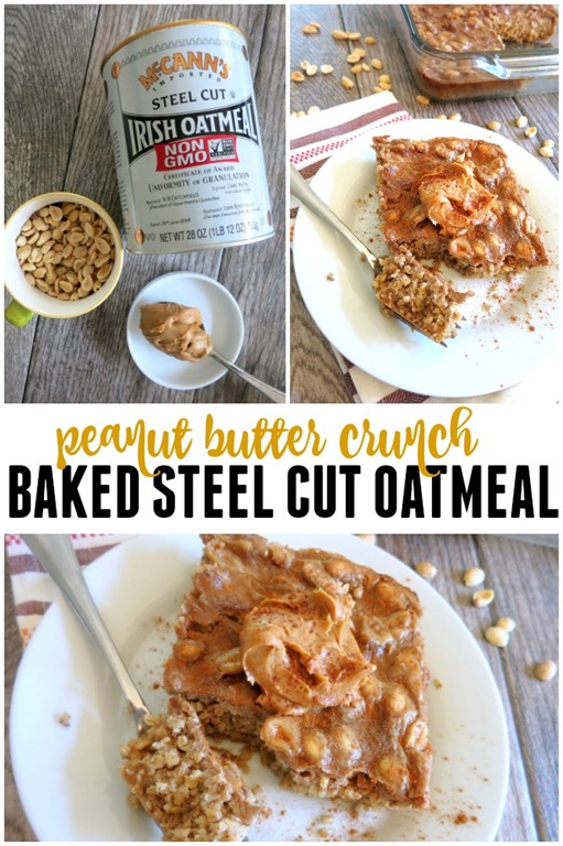 Peanut Butter Steel Cut Baked Oatmeal (This baked oatmeal is packed with peanut butter flavor and makes a perfect lazy Sunday morning breakfast. It is a dish that can also be baked ahead and reheated throughout the week for an easy weekday morning meal!)