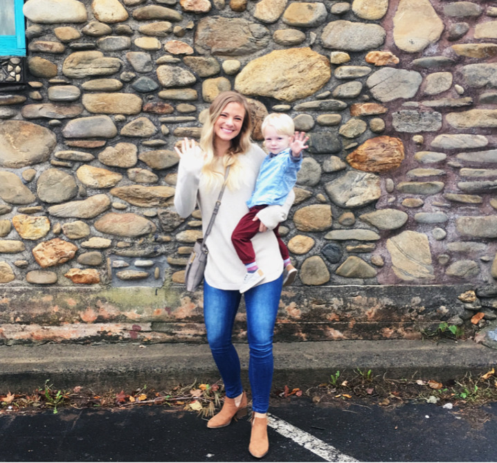 A few of you asked for details from the oversize cozy sweater outfit I wore during our mountain vacation so I wanted to break everything down for you here! The sweater was actually a recent StitchFix delivery “keep” so definitely request it if you’re a regular StitchFixer! (It’s the RD Style Rowca Scoop Neck Pull Over Sweater.) It has a high-low hem and covers the booty so it’s great to pair with leggings as well. The crossbody purse is Marc Jacobs and I LOVE it. Such a versatile color (I have it in “Mink”) and it’s big enough to hold a diaper and a small pack of wipes, a few snacks, lip gloss and my card case. Win! I bought it on sale through RueLaLa but it’s also available on Zappos! My jeans are actually a couple years old from White Plum but they don’t appear to sell them anymore. The booties have been a TILF feature in the past because they were pretty cheap but ended up being my go-to bootie last fall and winter. They’re also crazy comfy and I can honestly walk miles in them. The brand is Fergalicious (I know… haha!) but the cognac color I am wearing seems to be sold out almost everywhere. I managed to find them on DSW’s website in a taupe/gray color that I almost like more though and they still have most sizes!