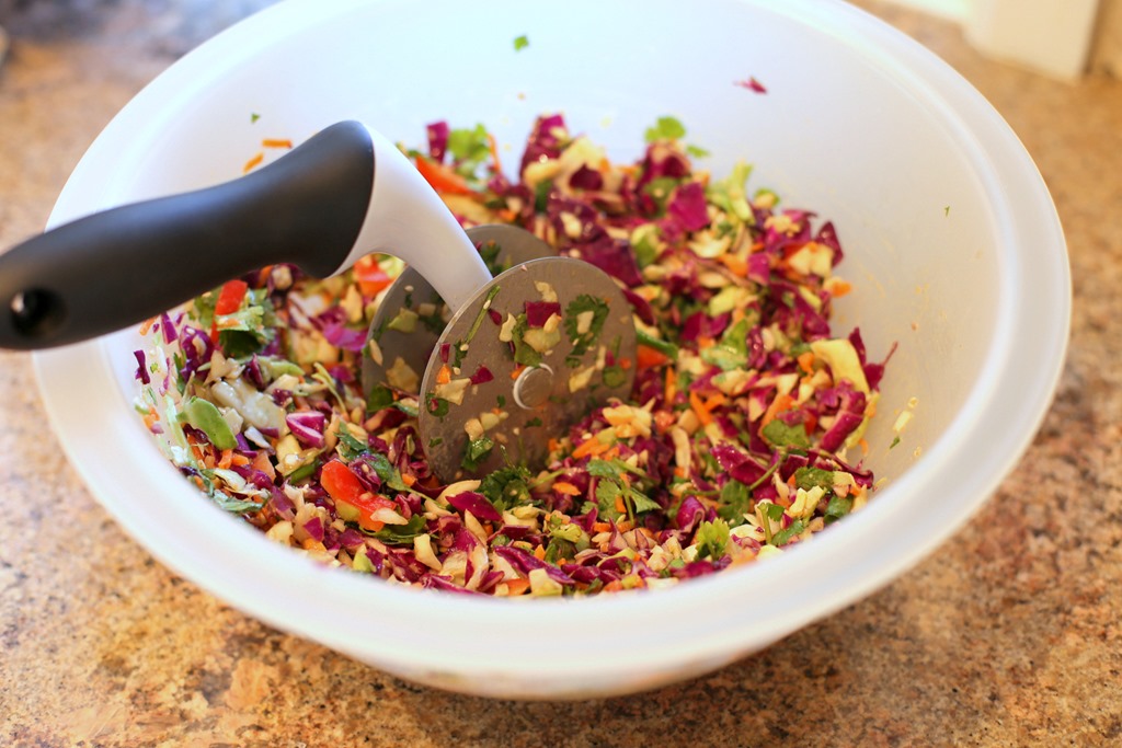 In Tuesday’s blog post, I mentioned my love for Kristin’s Thai Crunch Salad. It’s truly one of the BEST blogger recipes I’ve ever made and you MUST try it ASAP if you typically enjoy Thai flavors. I actually ended up making the recipe twice this week (it keeps fairly well as leftovers since it uses coleslaw mix rather than lettuce) and I realized there were two things I used to make the salad that might be worth mentioning into today’s post!