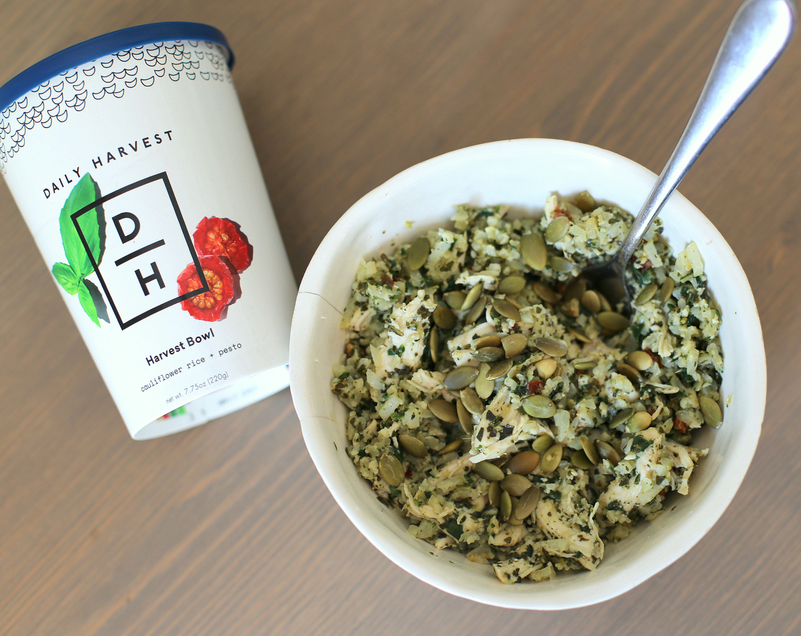 I feel like most of the people I see using Daily Harvest are enjoying their smoothies and while all the smoothies I’ve made have been delicious (the mint cacao is my fav!), I’ve most enjoyed their harvest bowls for easy and nutritious lunches for one. (In addition to smoothies and harvest bowls, Daily Harvest also makes soups, overnight oats, chia parfaits and lattes.)