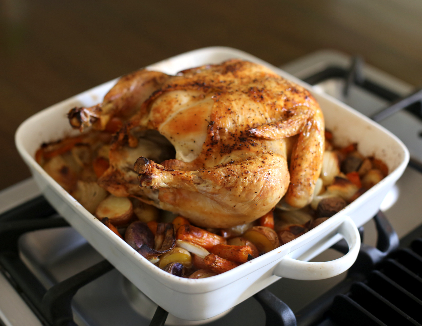 The Whole Smiths Good Food Cookbook is, hands down, the best cookbook I’ve purchased in a while. It was actually a past Things I’m Loving Friday feature and I’m continuing to use and love it on an almost weekly basis. This week I made the lemon pepper chicken from the cookbook for probably the fifth time and I’m officially declaring it my new go-to roast chicken recipe. It’s so darn good and so darn easy. I’ve also officially decided that when it comes to savory smells, a chicken roasting in the oven with onions, carrots and all the fixings is my all-time favorite smell, followed very closely by my mom’s homemade stuffing.