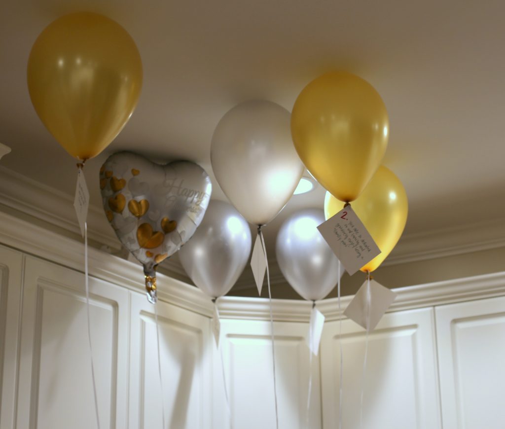 (One balloon floated out of the frame but I attached little notes with 8 reasons why I love Ryan to 8 balloons as a little anniversary surprise. Thank you, Pinterest, for this idea!)