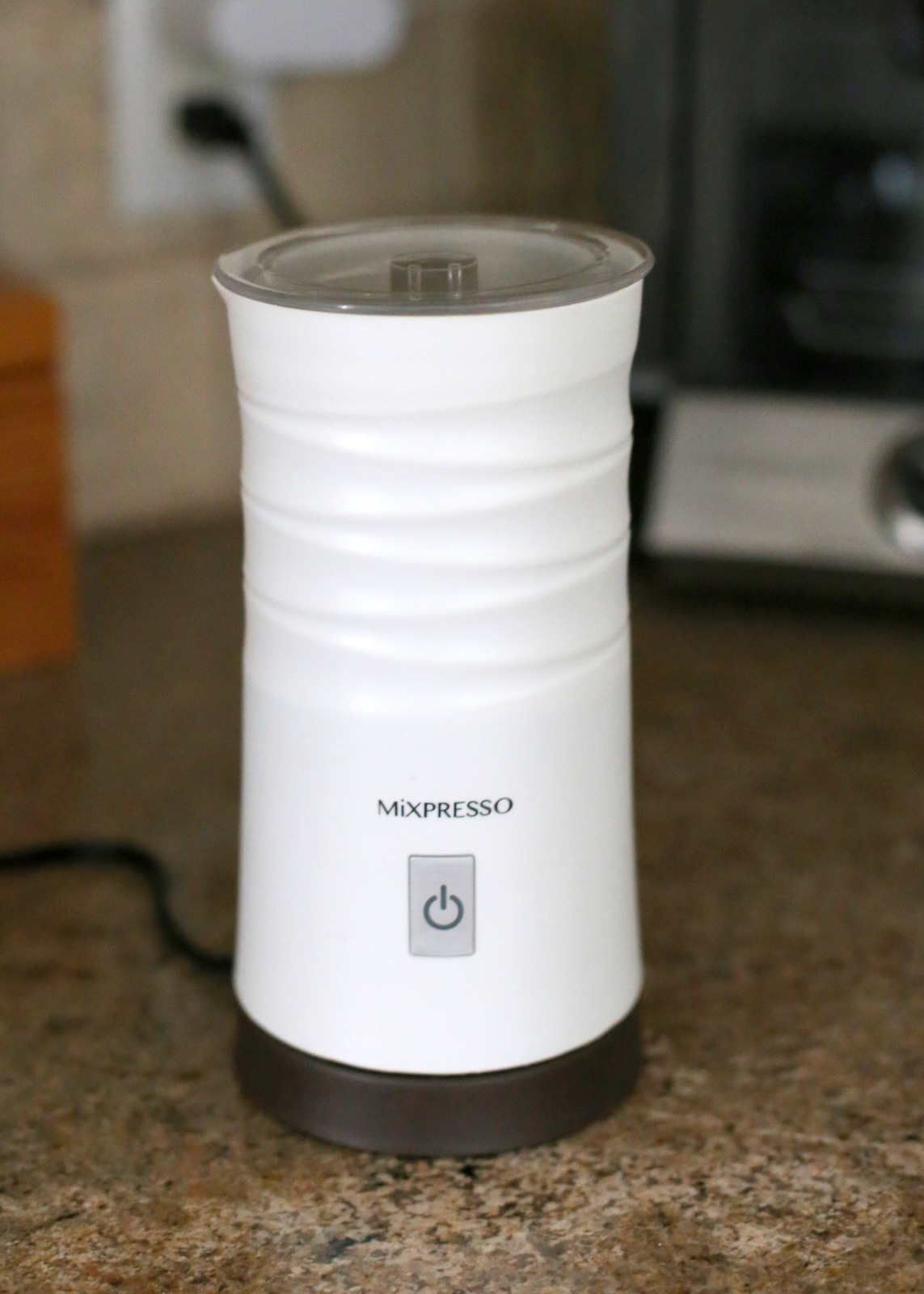 I ordered the electric frother a little more than a week ago and I’ve been making lattes that feel coffee shop worthy almost every day since when I’m not in the mood for one of my blender coffee creations. It creates the best frothy foam (I’ve primarily been using coconut milk in it) and I love that it’s incredibly quiet (great when Ryder is napping nearby) and warms my milk up in no time at all. Plus, it was only $34 which is a lot cheaper than others I found. LOVE this thing!