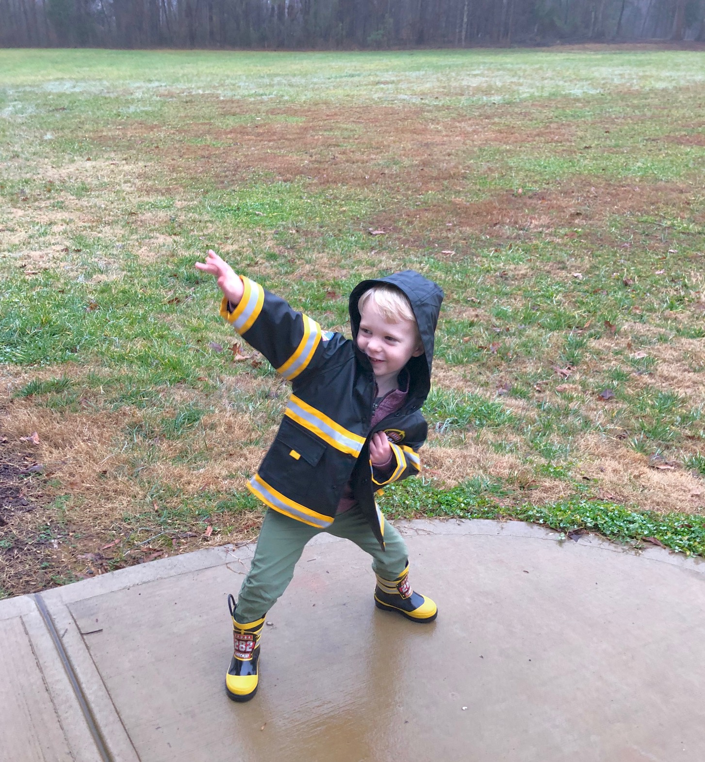 Right before Christmas, Chase’s latest Stitch Fix Kids delivery arrived and it included his favorite clothing items to date: A fireman rain coat and fireman rain boots. He plays imagination games all day every day, so this rainy day apparel is currently doubling as dress up items for “Fire Chase,” as he likes to call himself. And yes, that would be his “fireman pose” above. I don’t know where he comes up with this stuff!
