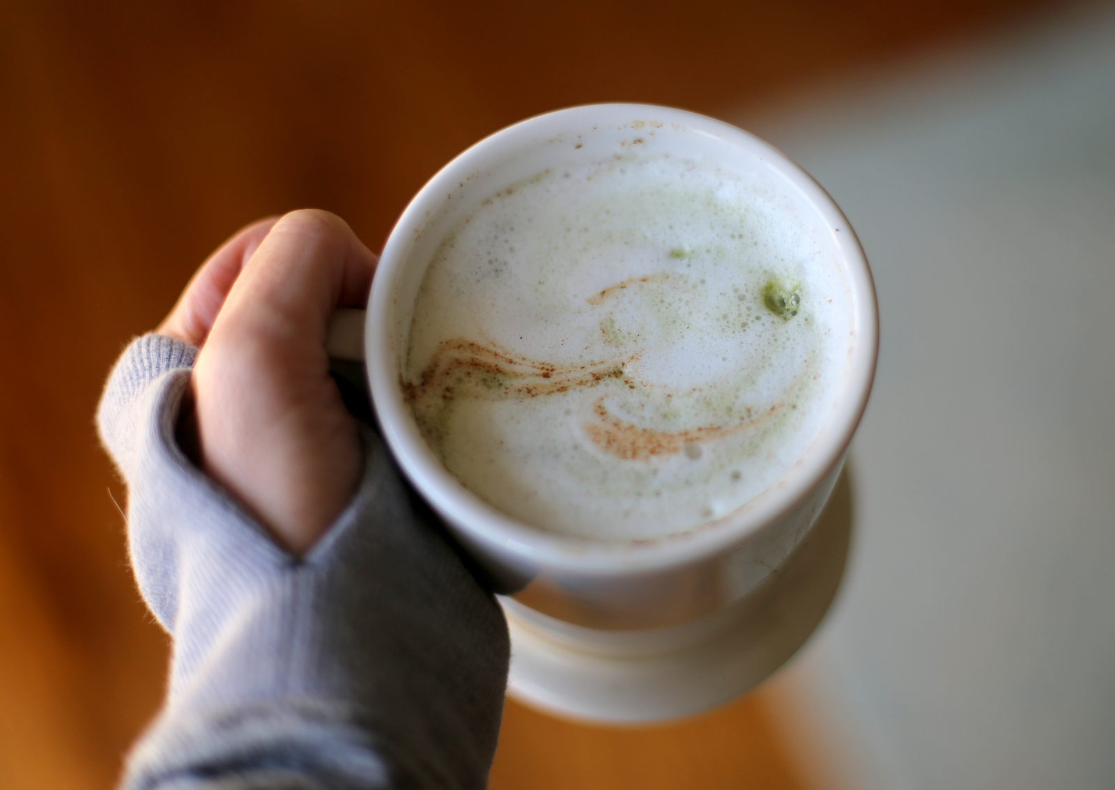 Milk frothers make tea lattes so easy, don’t they? I started to make golden milk lattes and chai tea lattes (using herbal tea bags and adding cinnamon and cloves with almond milk) at night at it’s so comforting and feels like a treat.