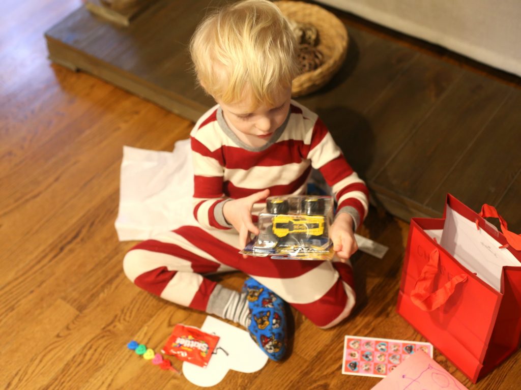 Chase drew his best friend Claire’s name and took Claire’s gift selection very seriously. He had the best time making her a card and putting together her little surprise so we dropped it off at school and his teacher sent me home with a sweet gift for Chase from his friend Cayla. Chase couldn’t stop talking about the fact that Cayla made him a card and got him a special gift and seemed blown away by the whole thing!