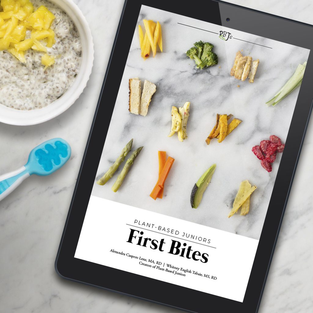 I have a wonderful resource to share with any of you out there who may be on the cusp of or in the middle of introducing solids to your little ones. One of my blogging friends, Whitney, is a registered dietitian and self-proclaimed “science and research junkie” who adheres to a predominantly plant-based diet. After the birth of her son, she teamed up with Alex, a fellow registered dietitian and mother, to launch Plant-Based Juniors in an effort to share evidence-based nutrition advice to empower parents to make the best nutrition decisions for their families. Together, Whitney and Alex created Plant-Based Juniors: First Bites, an ebook created especially for those looking to introduce solids to their little ones in a healthy way. They sent a copy my way and I instantly LOVED it. Plant Based Juniors: First Bites is packed with information and I love the science-based approach to feeding babies, as well as the visual guides that make it easy to see what bites of real food for little ones should look like at such a young age. The picture tutorials were truly SO helpful, especially if you’re a visual person and want to see a simple photo of what bites of real food should look like for babies of a certain age.