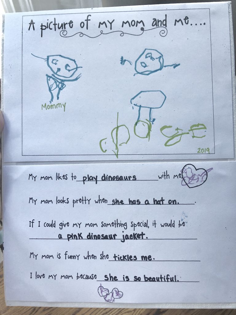 Speaking of Chase’s preschool, I completely forgot to share a peek at the Mother’s Day craft he made for me at school last week! I always get the biggest kick out of the fill-in-the-blank questions kids answer about their moms on Mother’s Day and had to laugh at the pink dinosaur jacket Chase apparently wants to give me and the fact that he thinks I look pretty with a hat on. When I asked him what hat he was talking about, he said my “crazy hat,” aka the fascinator I wore at the Queen’s Cup and my parents’ Kentucky Derby party. Maybe I need to bust out that bad boy a little more often!?