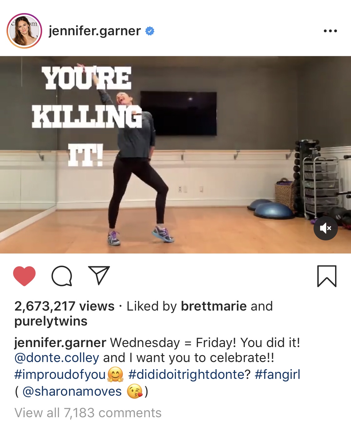 I don’t follow many celebrities on Instagram but of the select handful I follow, Jennifer Garner is my absolute favorite. She’s such a delightful human and is simultaneously a ray of sunshine and refreshingly real. She also frequently shares other accounts that make me smile (like the video on this one) and is worth a follow if you need a little boost of happiness in your day.