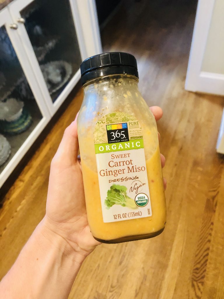 You know the dressing that comes on top of those sad little green house salads at sushi restaurants? The dressing that’s so good that it somehow makes up for the pitiful iceberg lettuce underneath it? Well, the Sweet Carrot Ginger Miso Dressing from Whole Foods tastes just like that dressing and it’s fantastic! I’ve been using this salad on chopped Asian salads and loving it! Paired with some sliced almonds, crispy wonton strips and shredded chicken, it’s a big-time winner.