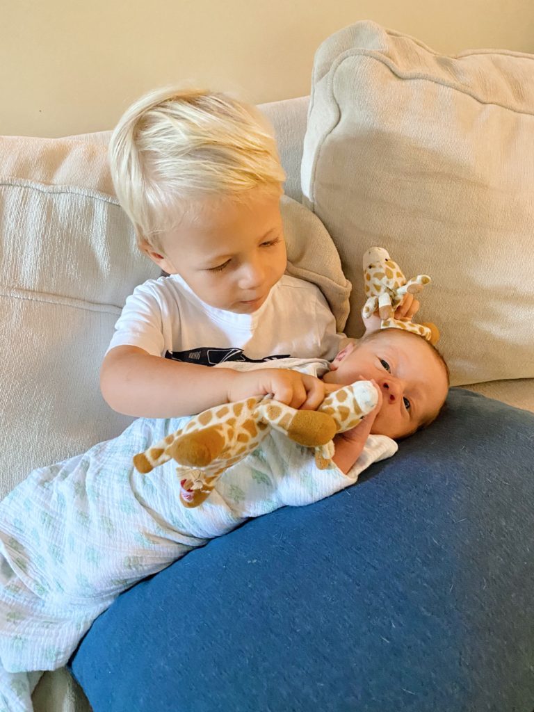 And he even lets Ryder hold him for a while as Ryder gently touches his nose, eyelids, “little hair” and “little toes” and tells us all about his little brother. Ryder also thinks Rhett needs to eat all the time and is constantly telling me “MOM! Baby Whett milk!” because apparently right now he just associates his little brother with hours and hours of nursing. (He’s not wrong.)