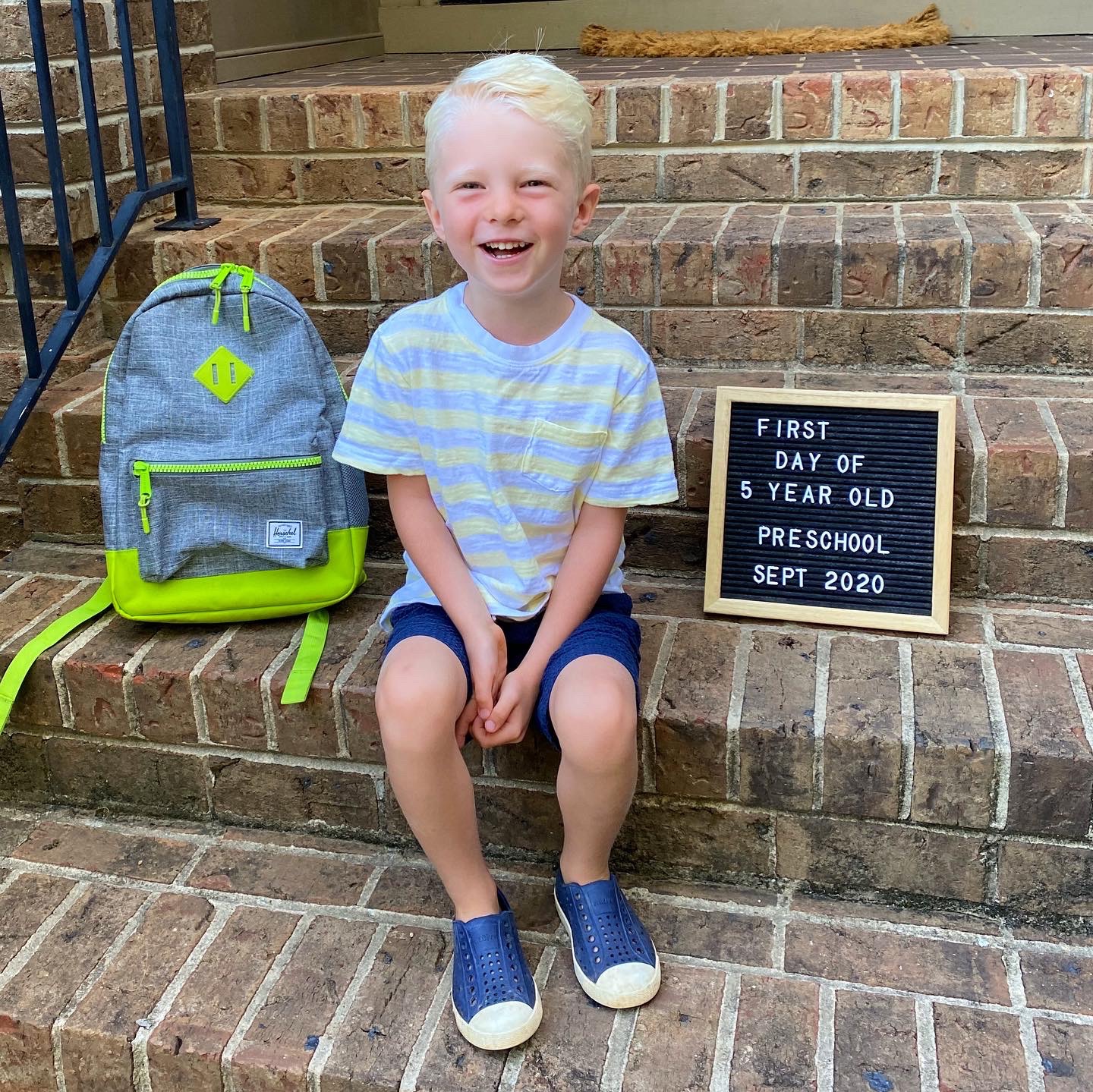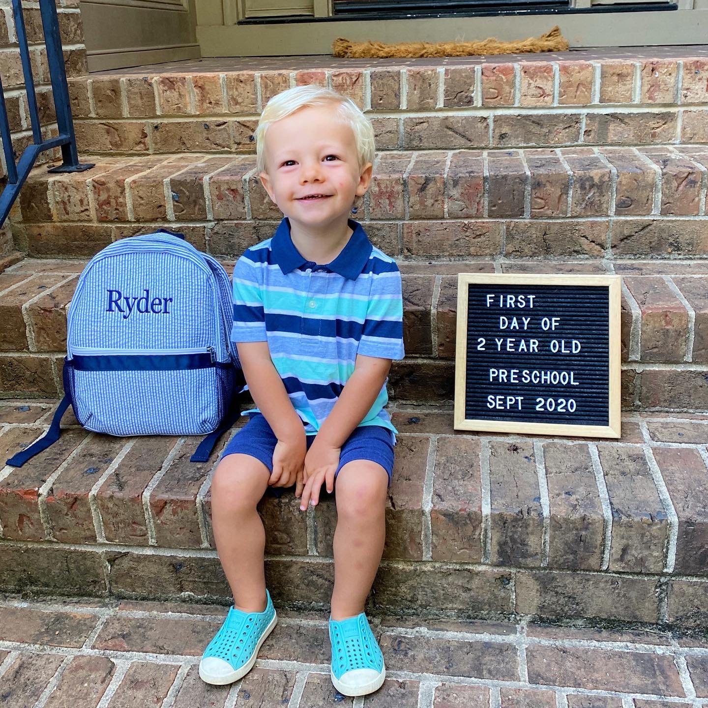 On Tuesday morning, some semblance of a routine popped up for our family as Chase and Ryder had their first day of preschool! They’re doing a staggered start so Ryder only went one day this week and Chase only went two but it was still so, so nice to have some normalcy find its way into our lives again. The boys were both so excited and I’m happy to report that Ryder walked into his classroom with no tears and emerged after his half-day at school with a big smile on his face! Victory!!! We knew Chase would be just fine since he’s been obsessed with school ever since he was two and Ryan and I loved chatting with the boys about their big day over frozen custard after we picked them up four hours later.