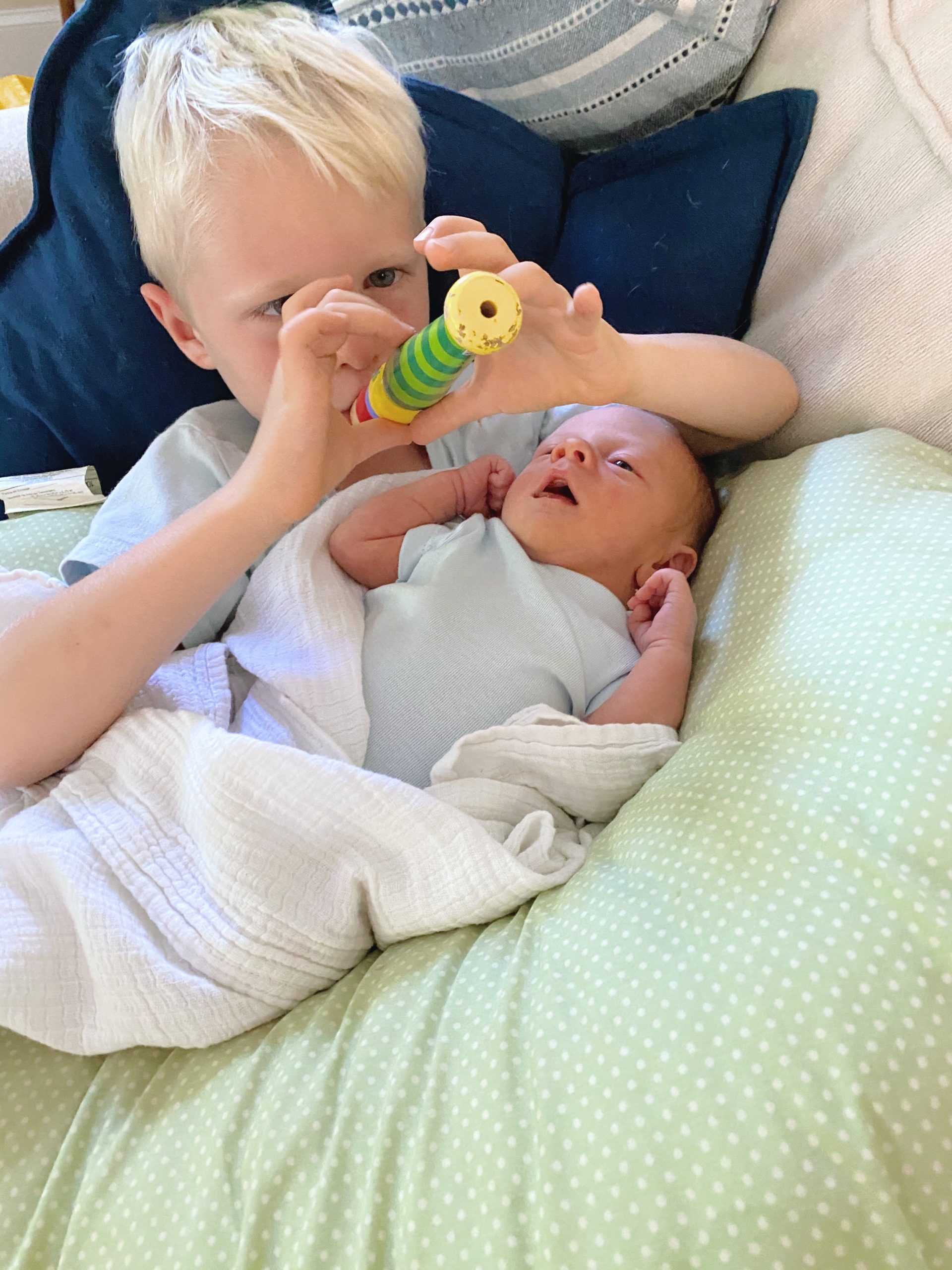 And he even lets Ryder hold him for a while as Ryder gently touches his nose, eyelids, “little hair” and “little toes” and tells us all about his little brother. Ryder also thinks Rhett needs to eat all the time and is constantly telling me “MOM! Baby Whett milk!” because apparently right now he just associates his little brother with hours and hours of nursing. (He’s not wrong.)
