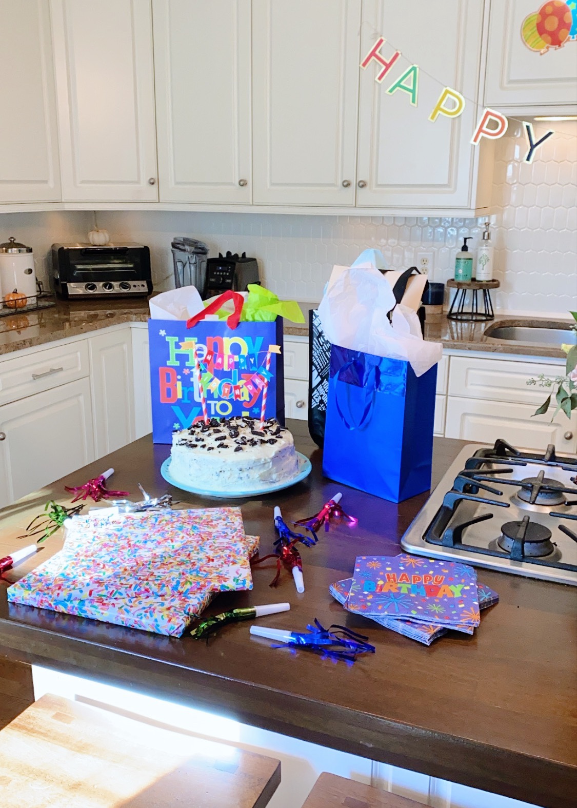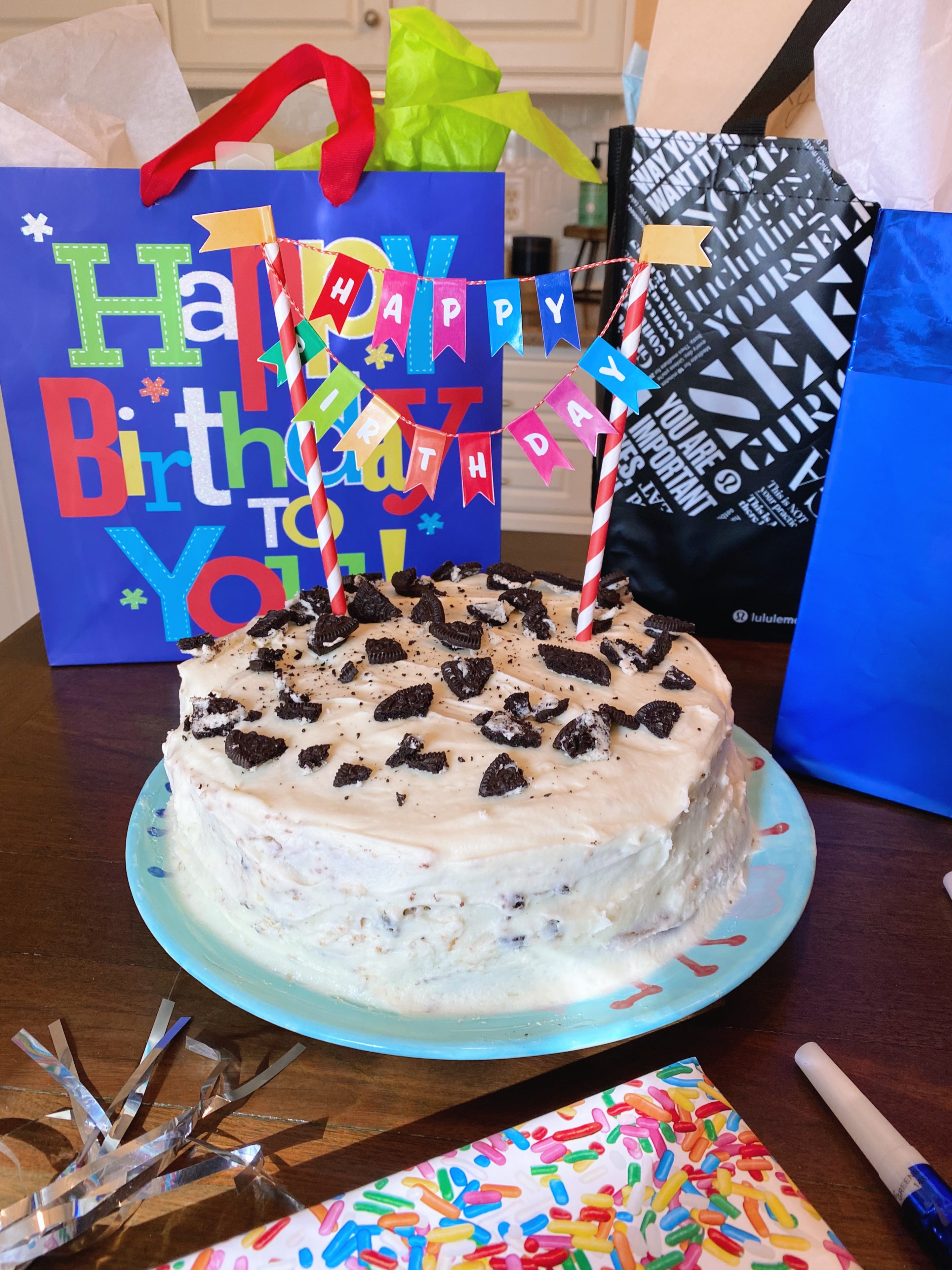 We celebrated Ryan’s birthday on Monday and it was a very special day! We did our usual birthday decorations at home and Chase and Ryder also surprised him with birthday banners. (They are banner-making fiends for any and every occasion lately. A giant roll of white butcher paper and Kwik Stix tempera paint sticks were two early quarantine crafting purchase that we’ve used again and again!) We all chipped in and also got to work in the kitchen making Ryan an Oreo marble birthday cake which looked like a hot mess but tasted great. Ryan requested Oreo marble cake which was a bit of a head-scratcher at first but adding crushed Oreos to the vanilla cake mix and the middle layer of vanilla buttercream and decorating the top of the cake with the remaining cookies worked well and had everyone going back for second slices of birthday cake. We all had fun celebrating our favorite guy and hope he felt extra loved on his special day!