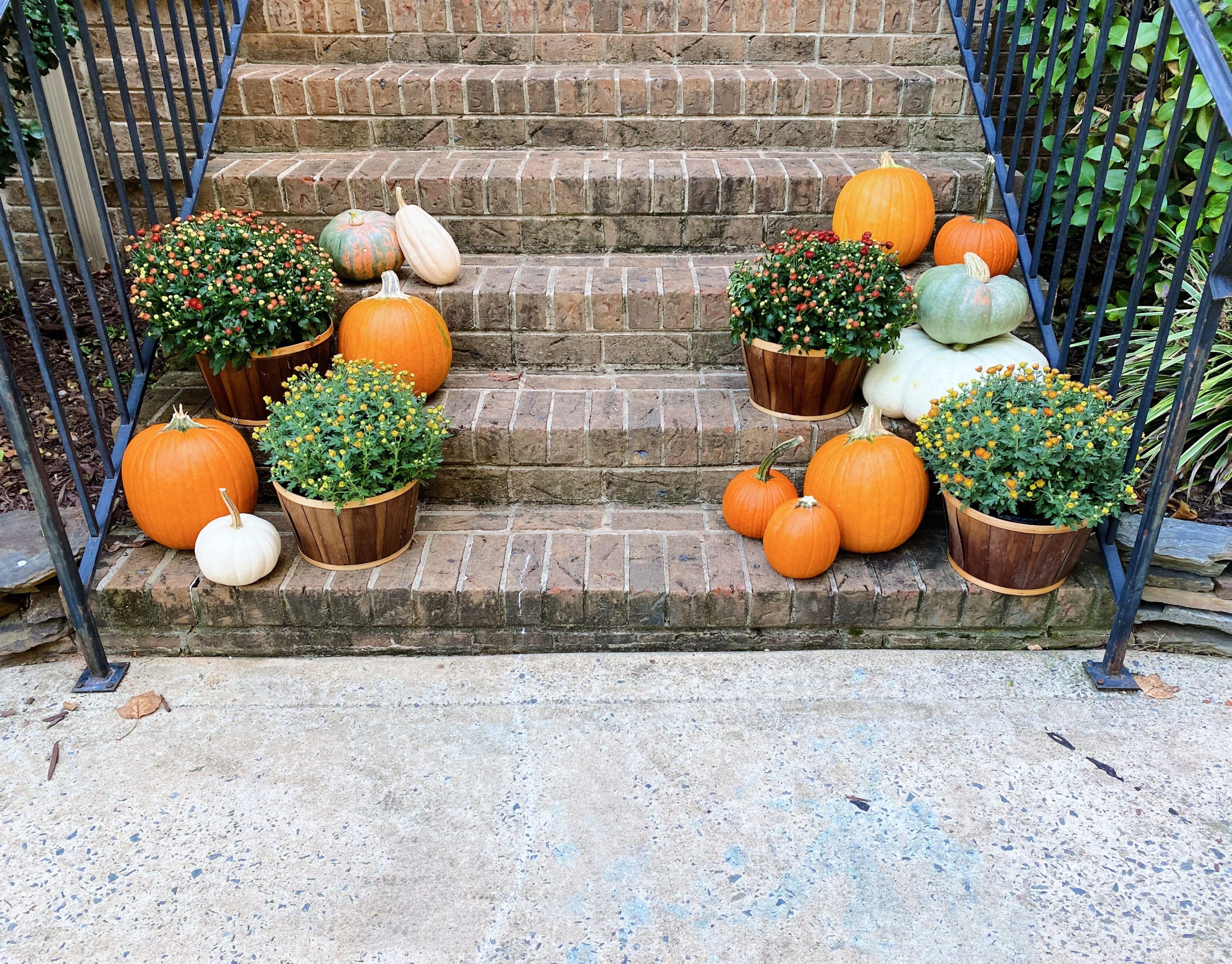 Last weekend, we made our way to Josh’s Farmers Market in Mooresville to stock up on pumpkins for our porch! While I love twinkling holiday lights around Christmas, beautiful porches featuring an array of pumpkins, gourds and mums are a close second in my mind when it comes to festive outdoor holiday décor. Driving up our driveway and seeing our little pumpkin porch display never fails to put a smile on my face!