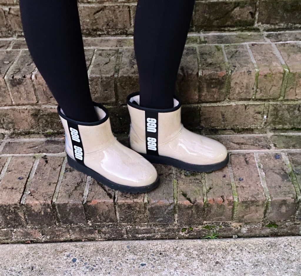 First, I saw these UGG Classic Clear Mini Boots on Zappos and they immediately caught my eye as a funky waterproof rainboot option for the colder months. They ended up on my Christmas wish list and I love the way you can see the warm faux-shearling through the translucent waterproof boot! It makes them look as cozy as they feel!