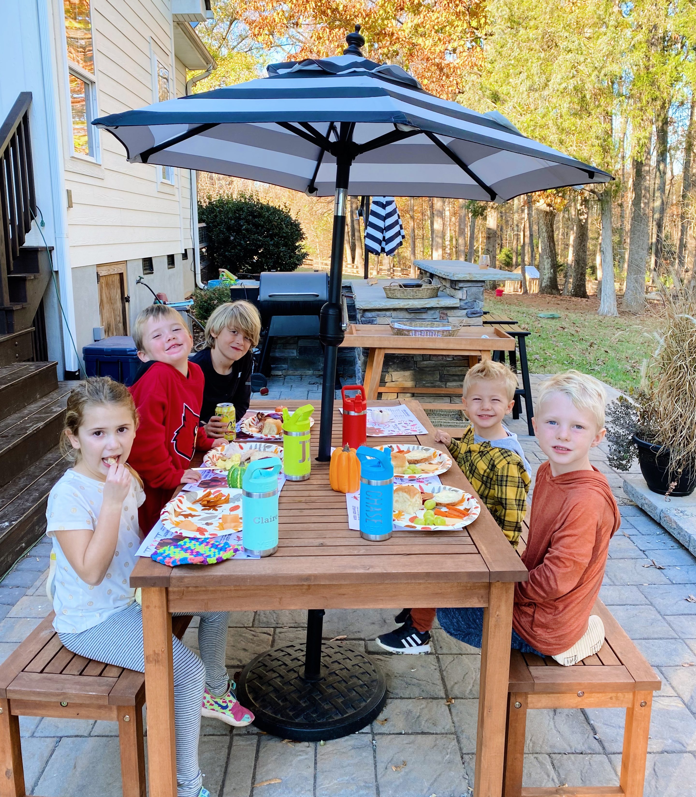 Thanksgiving 2021 was a good one! We initially planned to head south to Sarasota but my mother-in-law unfortunately hurt her back and thought it would be best for us to visit another time (we missed you Diane and Les!!), so we pivoted our plans and ended up celebrating with friends. Our friends Lauren and Tony invited us to their home to join in their Thanksgiving family fun and since their kids are some of our kids’ best friends, we knew it would be the perfect place to celebrate. Ryan, the boys, my father-in-law and I headed over to their house after Rhett’s nap and spent most of the afternoon and early evening chatting, enjoying some delicious drinks and food and watching the kids run around outside.
