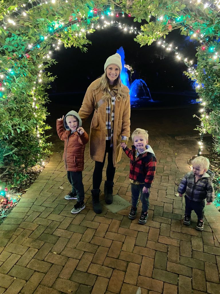 After attending the holiday lights event at Daniel Stowe Botanical Garden last year, we knew we needed to make it happen again this year and drove down to Belmont, North Carolina a couple of days before Christmas. The gardens are completely decked out with holiday lights and it’s a wonderful event for kids because it’s all outdoors and they can run around and just be kids. Our older boys love it and since Rhett loves nothing more than being set free to wander and exercise his Mr. Independent ways, it was a great activity for him, too. This event is quickly becoming a holiday staple for our family!
