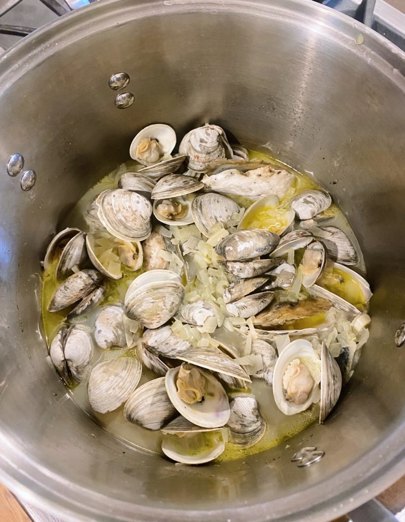 We’re basically Instacart’s number one fans in our house these days but on Sunday we took a family trip to Whole Foods to replace some items I can only find at Whole Foods and grab some food for the week. Chase and Ryder love the seafood counter because they think seeing whole fish on ice is really cool but Chase surprised all of us when he said he wanted to try some oysters and clams. I would never call Chase an “adventurous eater” so I was admittedly super psyched by his interest in trying something that was pretty far out of his usual comfort zone. (Perhaps there’s some Florida genes in there somewhere?) We left with a bag of fresh clams and Ryan prepared them in a large pot with butter, white wine and garlic — he loosely followed this recipe — and we LOVED them! Ryder ate one and said that was enough for him but Chase and Rhett both ate a bunch! Rhett said “Mo! Mo!” (“more”) over and over again. My seafood loving heart was soaring!