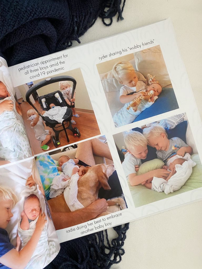 Sixteen months later and Rhett’s baby book is done! I set a deadline for myself to complete Rhett’s baby book by Christmas because I’ve given Ryan our boys’ baby books for Christmas the year after they’ve all turned one (even though this is really a gift for all of us) and knew he’d be excited to flip through Rhett’s on Christmas morning, too. (The boys’ baby books capture pictures from newborn days to their first birthday.) I love having Rhett’s all done and looking back on the memories from his first year takes me right back to that crazy time in our lives. I’ve used Mixbook for all of the boys’ baby books and stand by this recommendation because they make photo books a breeze and have a lot of themes that are beautiful, simple and not too cheesy. In case you’re in the market for a photo book for you or your family, this referral link will give both of us $25 off our next $50+ order.
