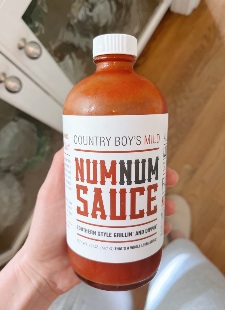 I am fairly certain I first discovered Num Num sauce through a free sample at Whole Foods many moons ago. Somehow I forgot about it for a while there — I blame Amazon Prime food delivery + Instacart since I don’t browse at the grocery store as much — but when I popped into Whole Foods a few weeks ago, there it was! My beloved Num Num sauce! I want to describe it as BBQ sauce but it’s really not. It’s not ketchup or anything else like that either. It’s wonderfully unique and a favorite of mine for on chicken thighs. I also love it drizzled on top of roasted veggies or even ribs on the rare occasion we make ribs in our house. It’s a great staple for me to have on hand when I am out of dinner ideas because chicken + veggies + Num Num Sauce is always a winner!