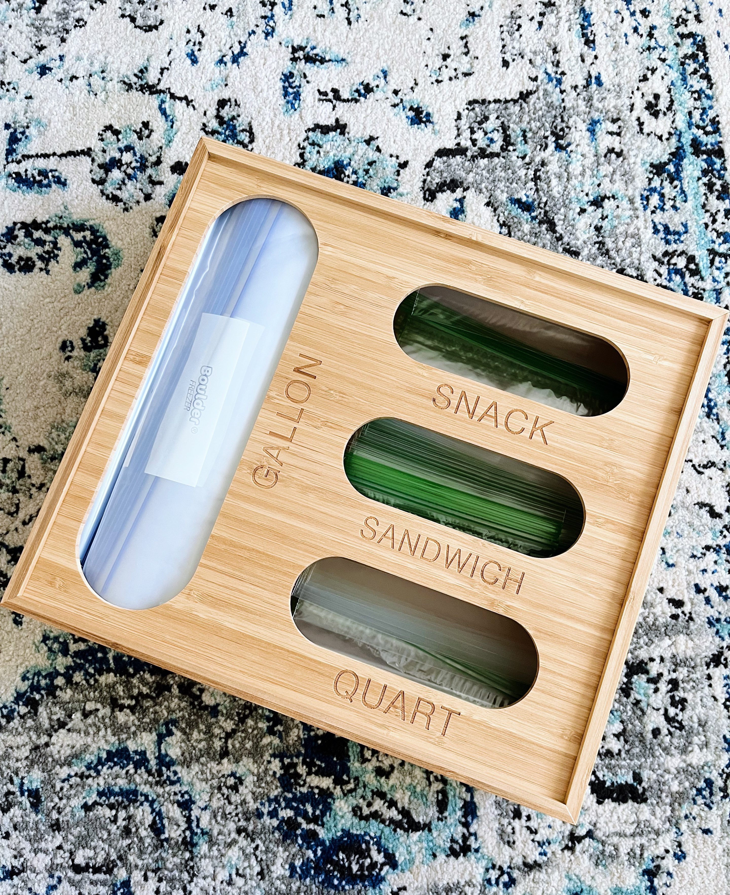 One of the things I am most excited for with regard to our new home is the fact that will will have a pantry! We currently store all of our food in cabinets in our kitchen and dreaming about having the space to organize our food and organize bulk items, kid snacks and other odds and ends makes me feel a million times lighter! I’m trying not to buy much until we’re actually in our new home but I couldn’t resist this Amazon find when it was a lightning deal the other week. I love the way it cleans up sandwich bags and makes them feel more organized and somehow actually kind of… pretty! I’ll be taking this one to the new house and cannot wait to dive into pantry organization in the new home!