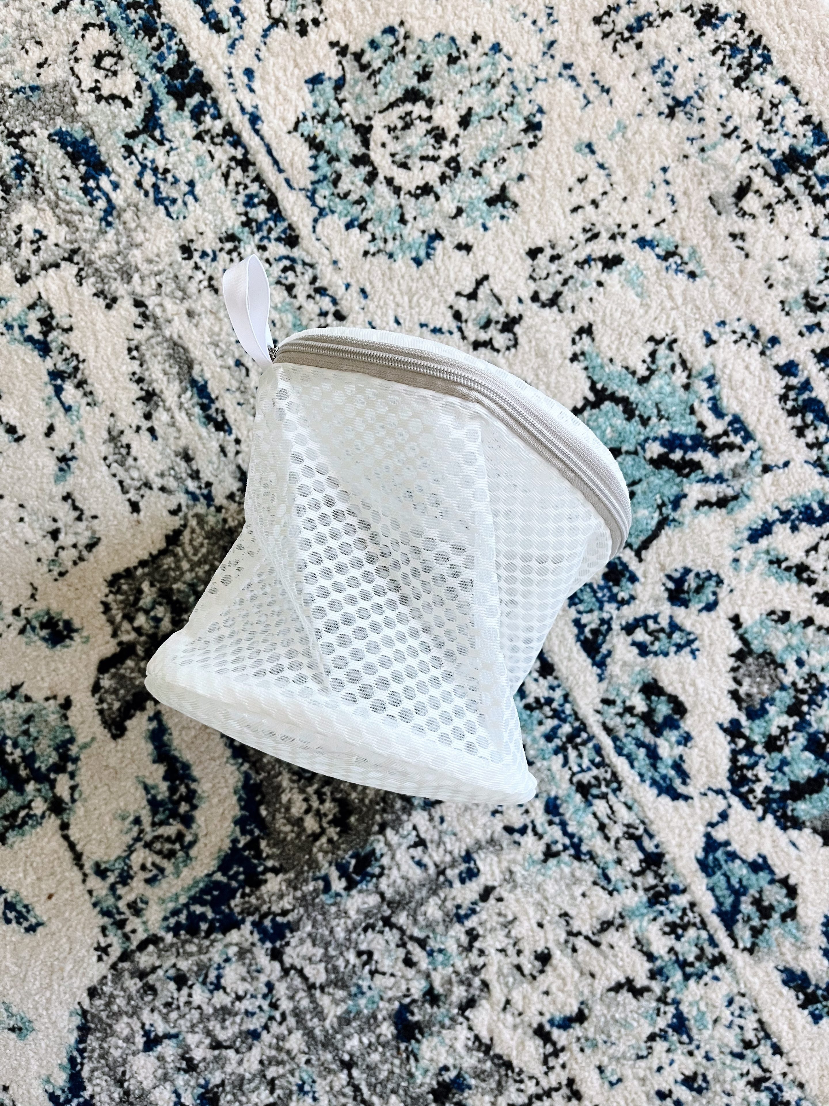 This handy little bag is a game changer for anyone out there who constantly washes sports bras and bralettes with liners inside. If it drives you crazy to have to stuff the liners of your bras back into them after every wash, this handy bag will make you a little too happy! It keeps the liners safely tucked inside sports bras and bralettes (and even lined tank tops!) and is a small thing that makes laundry a little less miserable in our house.
