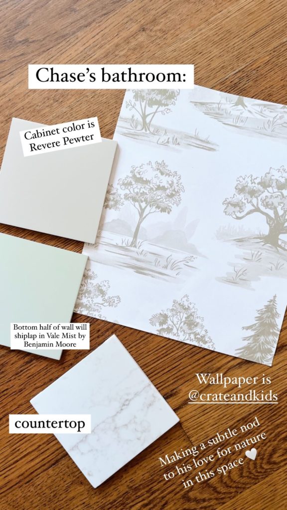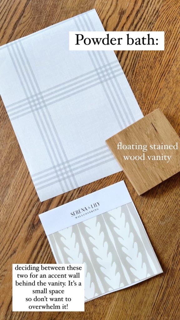 For the powder bathroom: Deciding between Serena & Lily Oceana Wallpaper and Joss & Main Reavis Plaid Dove Wallpaper (also considering using the plaid wallpaper in Chase’s bedroom!)