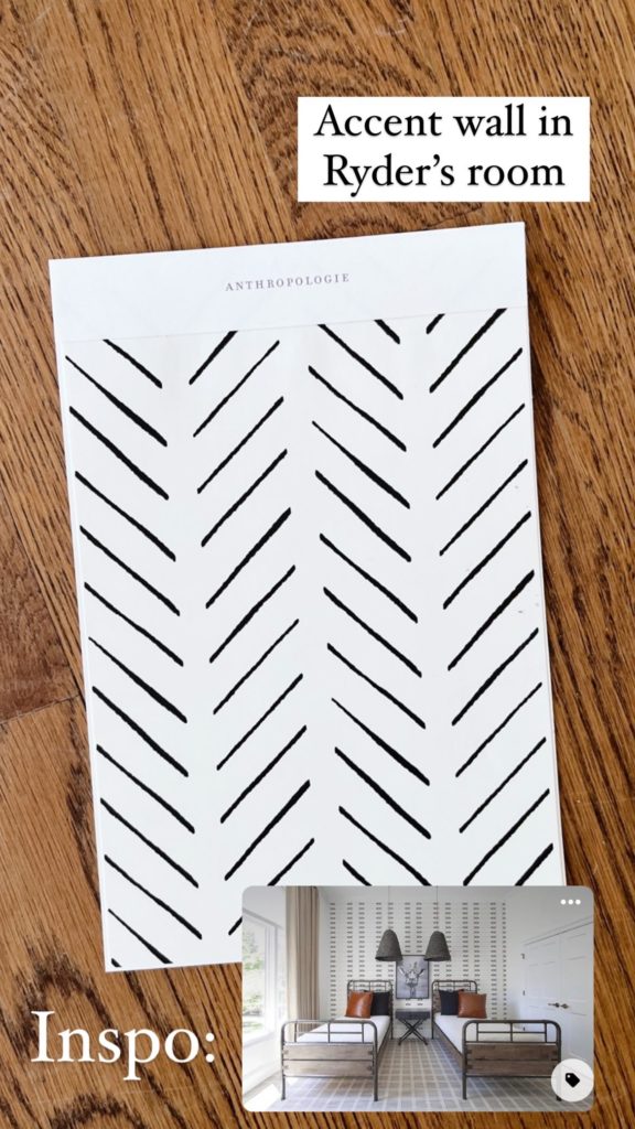 For the accent wall in Ryder’s room: Pick Up Sticks Wallpaper from Anthropologie