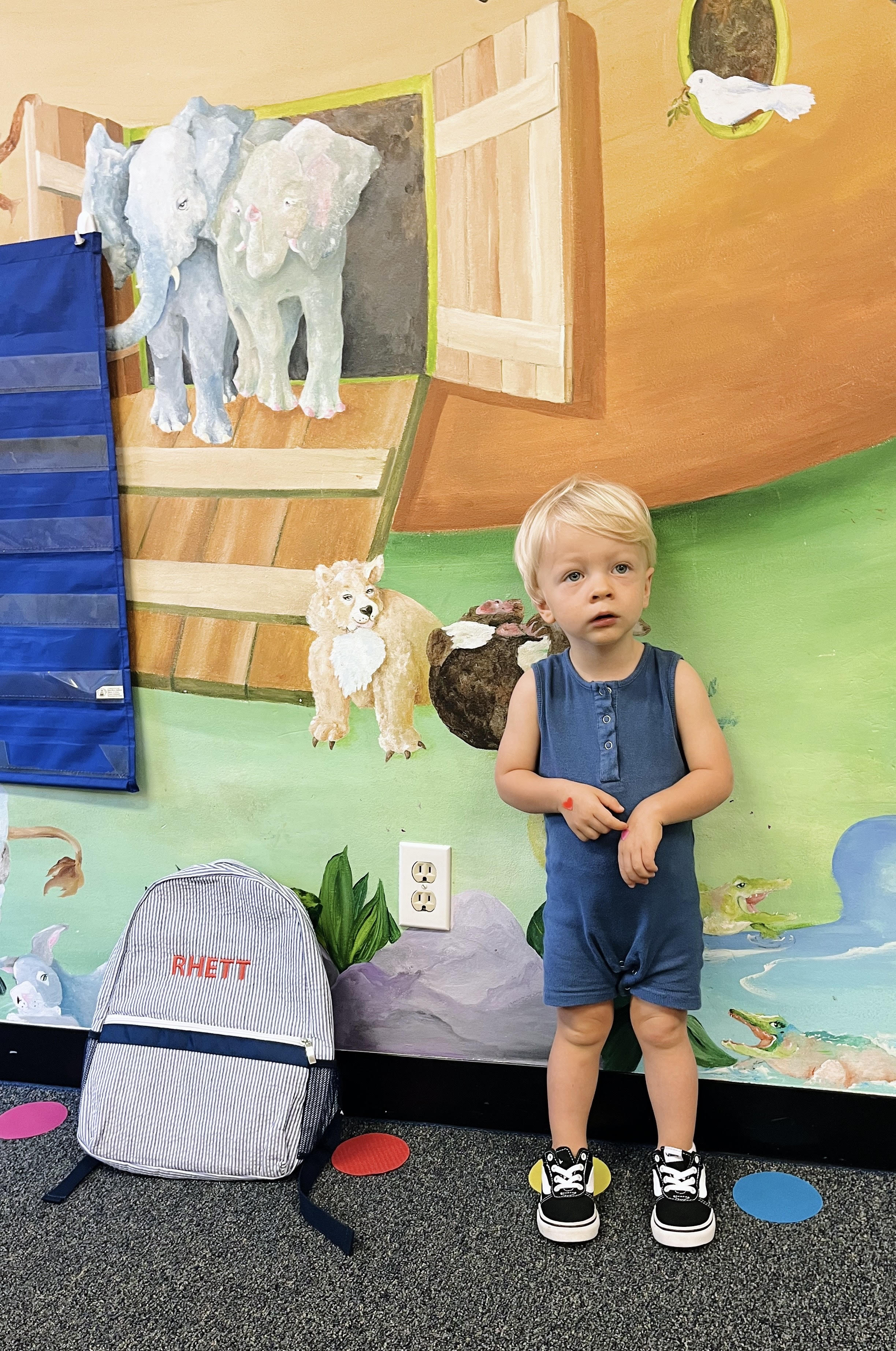 (Rhett’s romper: Amazon / Shoes: Vans slip-ons — gifted / Backpack: Etsy — Chase and Ryder had the same one! The smaller size is perfect for a 2-3 year old but I opted for the larger size for Rhett this time so it will last longer.)