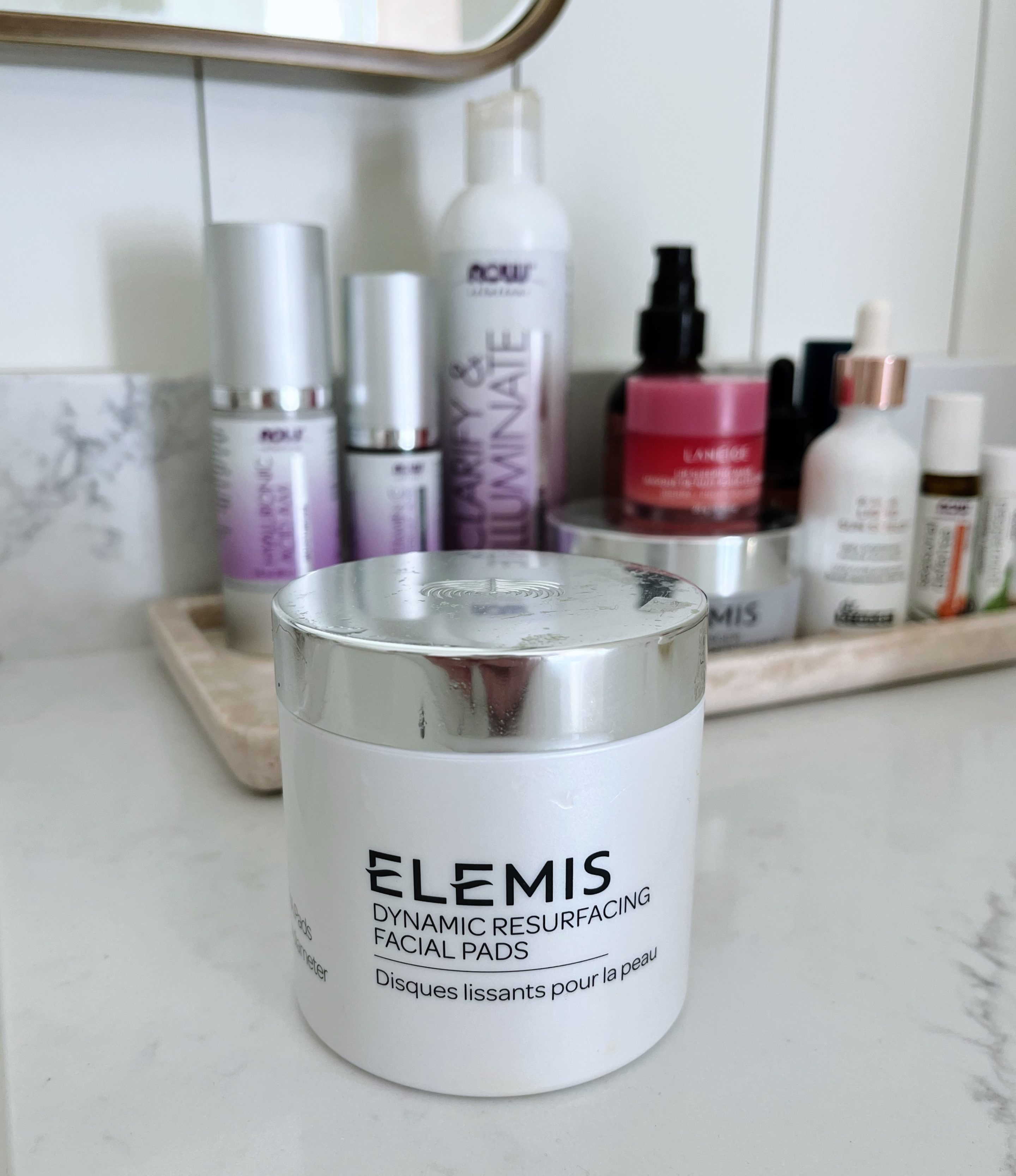 After falling in love with influencer-favorite ELEMIS’ pro-collagen cleansing balm last summer, I added their dynamic resurfacing facial pads to my cart during my last ELEMIS order and they’ve quickly become another skincare favorite. (FYI, they’re currently 50% off with code DEALS on the ELEMIS site! I just restocked!) I do not wash my face when I wake up in the morning but instead use one of these resurfacing pads on my face the minute I wake up, a tip I learned from The Sister Studio. They feel amazing on my face and instantly make me feel more awake. They accelerate skin’s natural cell turnover and the textured pads reduce the look of dark spots, pores and uneven skin texture. I truly think they help my skin look brighter in the morning and they’ve quickly become a staple in my skincare routine. Lately my morning skincare routine looks like this (in this order, all applied before makeup): ELEMIS Dynamic Resurfacing Facial Pads, NOW Solutions Vitamin-C + Ferulic Acid (I also use Hyper Skin Vitamin C serum but recently ran out), NOW Solutions Hyaluronic Acid AM Moisturizer and last but most important, Dr. Brand Liquid Sun Shield SPF 50.