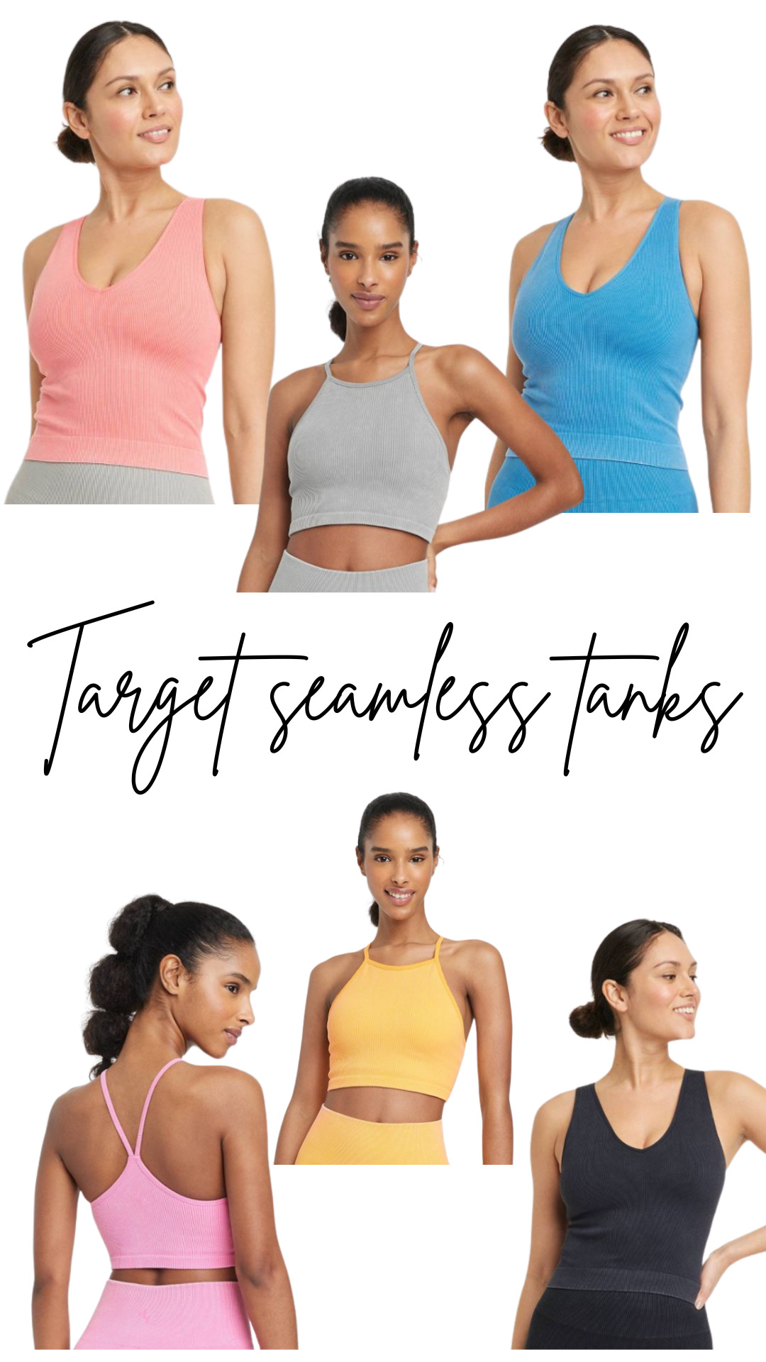 I first discovered this seamless tank after asking a woman working out near me at Burn Boot Camp where she got her top because I loved the ribbed material. When she said Target and told me the price point, I was sold before I even tried it on! Once I received the v-neck ribbed top I ordered in the mail, I loved the fit so much that I found myself back on Target.com looking at other tops from their JoyLab line. This led me to the high-neck version of the tank and I immediately ordered one as well as the v-neck top in another color. They fit so well and the material is substantial enough to not feel cheap or too thick that they make you feel overheated. The length is of the v-neck top is cropped without being sports bra-tiny and both tanks come with a built-in bra and removable cups. (I leave the cups in and don’t wear another sports bra with them.) I love these tops so much!