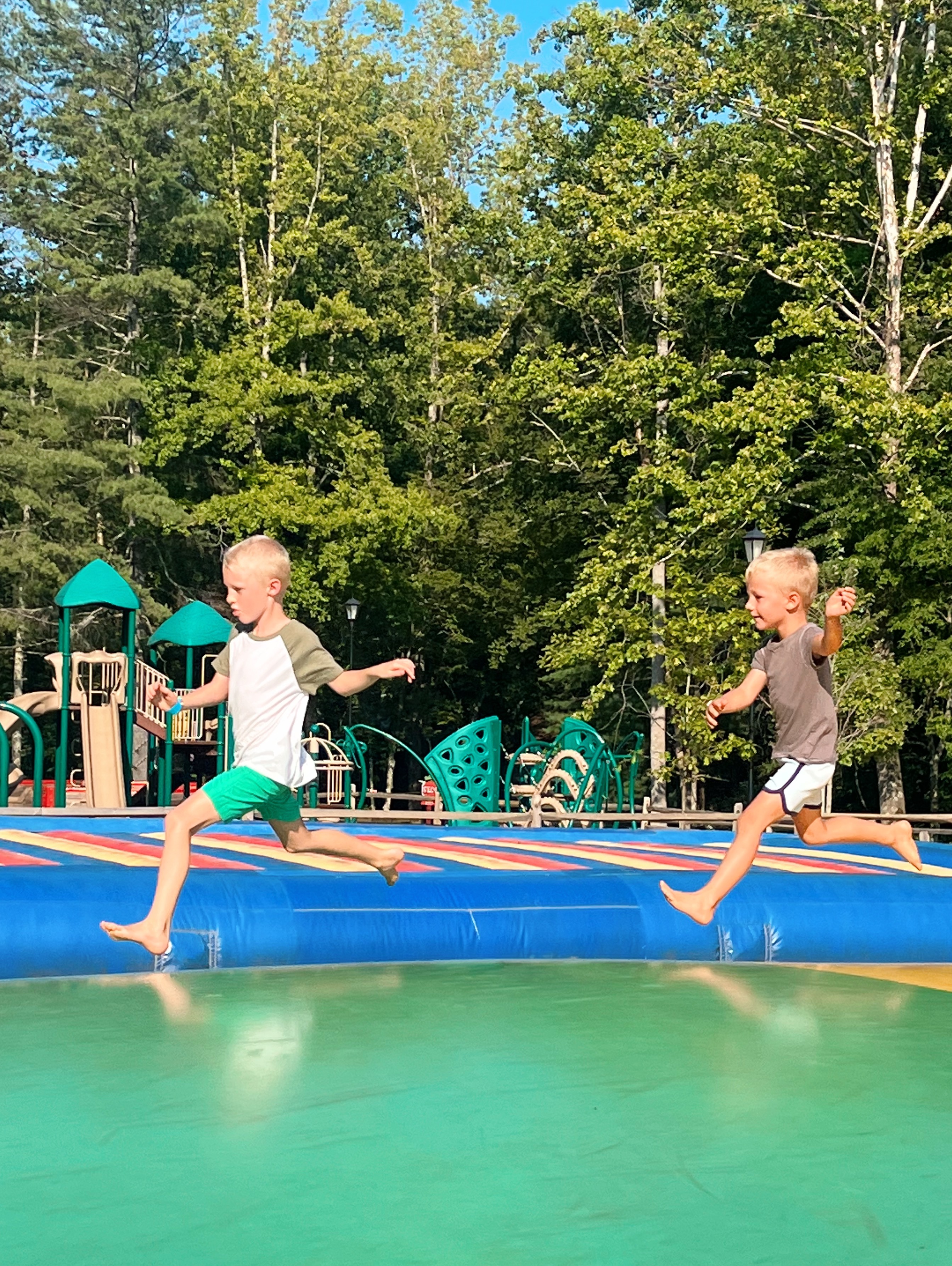 One of the big changes since our last visit was the addition of a giant blow-up obstacle course on the lake.